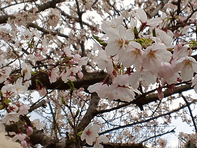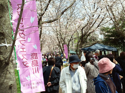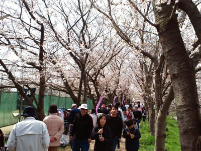 桜並木の間をたくさんのお客さまが歩いていました