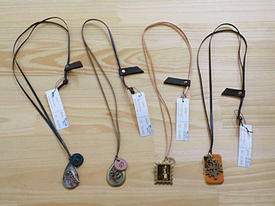 クリスタライズ付のウサギモチーフのペンダント・革タグ付のトランプうさぎのペンダント